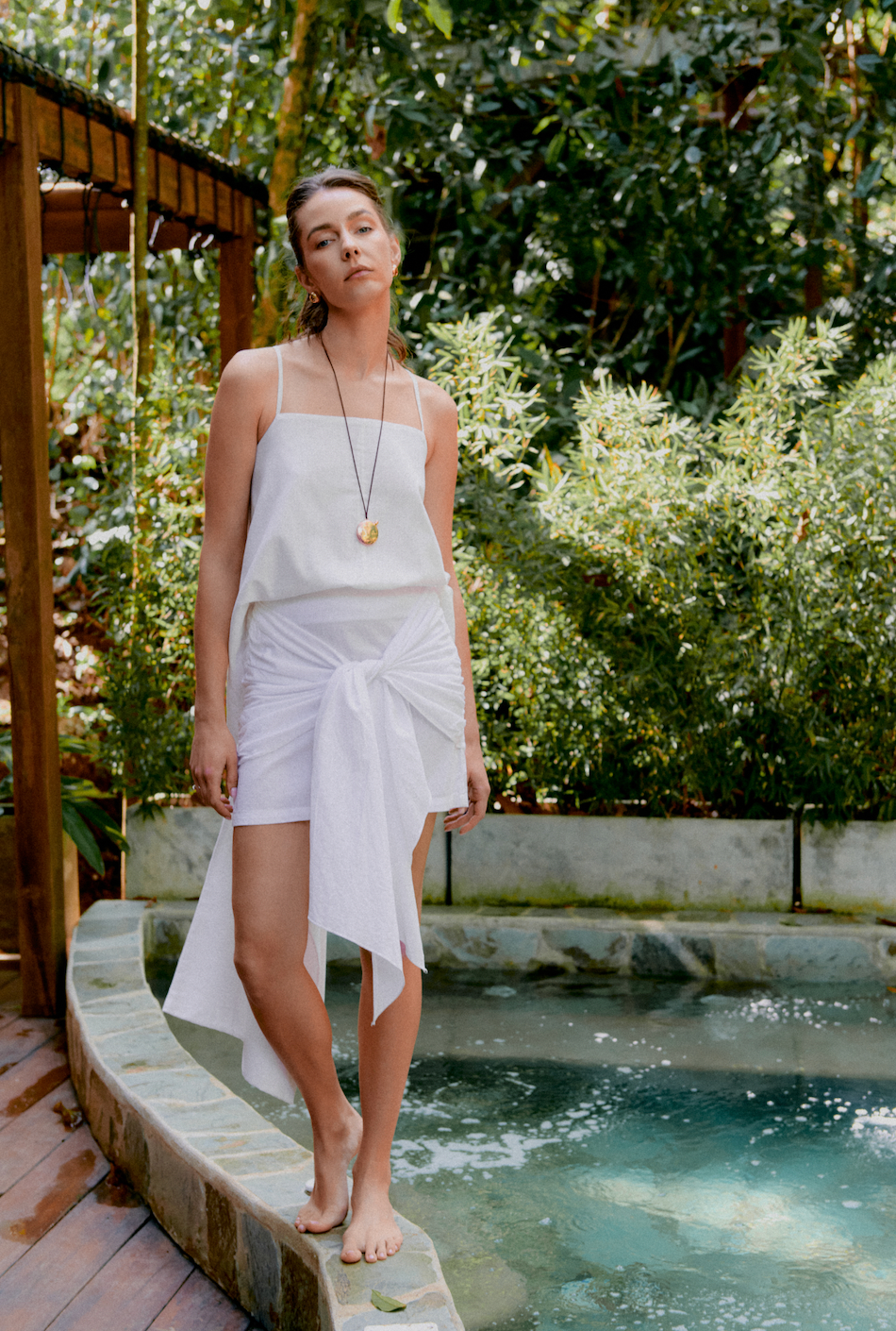 La falda Lottie es un diseño moderno a la par que atemporal; es la clásica silueta que le da un toque de elegancia y feminidad a cualquier look. Se ha elaborado en lino orgánico y cuenta con unas tiras largas y anchas en la parte delantera; puedes amarrar la falda bien sea con un moño en la parte frontal o a un lado tipo pareo. Esta silueta clásica puede combinarse con camisetas básicas o estampadas e incluso con vestido de baño. Mira el set completo con nuestra Camisa Lottie y eleva el look con algunas de nuestras candongas.
